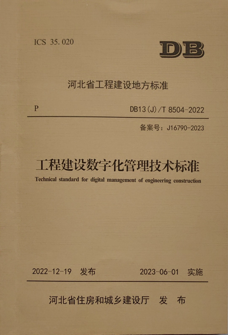 近日,由河北省建筑科學(xué)研究院有限公司、河北省住房和城鄉(xiāng)建設(shè)廳信息宣傳與檔案中心和北方工程設(shè)計研究院有限公司共同主編的《工程建設(shè)數(shù)字化管理技術(shù)標(biāo)準(zhǔn)》(DB13(J)/T8504-2022)已完成印刷,將于2023年6月1日起實施。